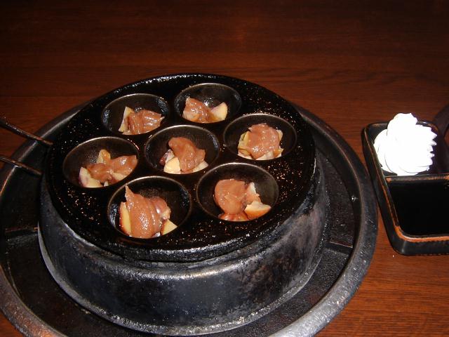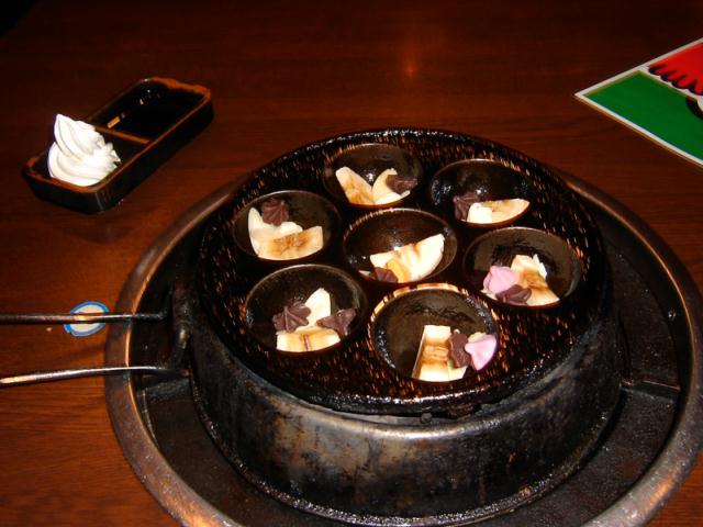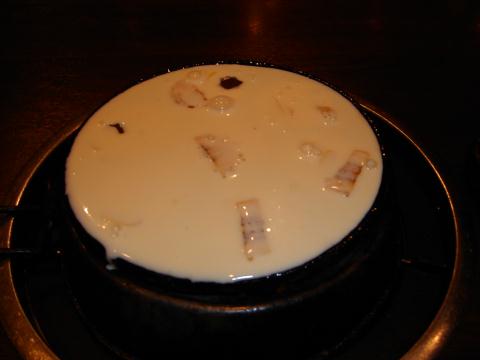 ここに、店員が持参したたこ焼きベースを注ぐ。